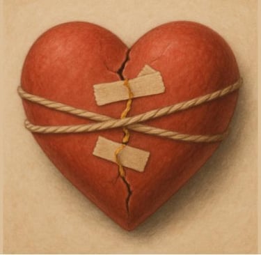 This is not the life I'm living now. My broken heart has been in the shop. Repairs were made. It will never be in factory condition, looking like it just rolled off the assembly line. My heart is more like a favorite book that's been lent out too many times.